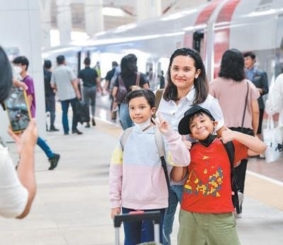硬聯(lián)通雅萬(wàn)高鐵是我國(guó)在境外完成全過(guò)程勘察設(shè)計(jì)建設(shè)的首個(gè)高鐵項(xiàng)目,于去年10月17日正式開通運(yùn)營(yíng),是中印尼共建“一帶一路”合作的典范。圖為乘客在和雅萬(wàn)高鐵動(dòng)車組合影留念。新華社記者 徐 欽攝