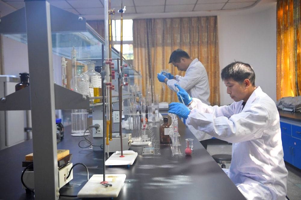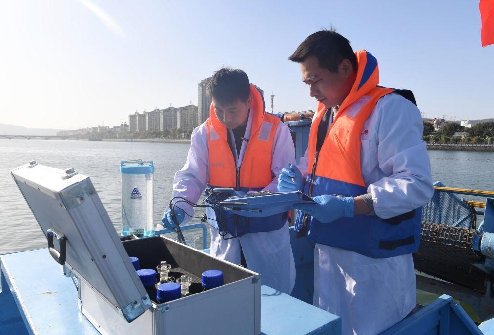 2024年11月28日,在南陽市生態(tài)環(huán)境局淅川分局環(huán)境監(jiān)測(cè)站,工作人員在進(jìn)行水質(zhì)監(jiān)測(cè)。