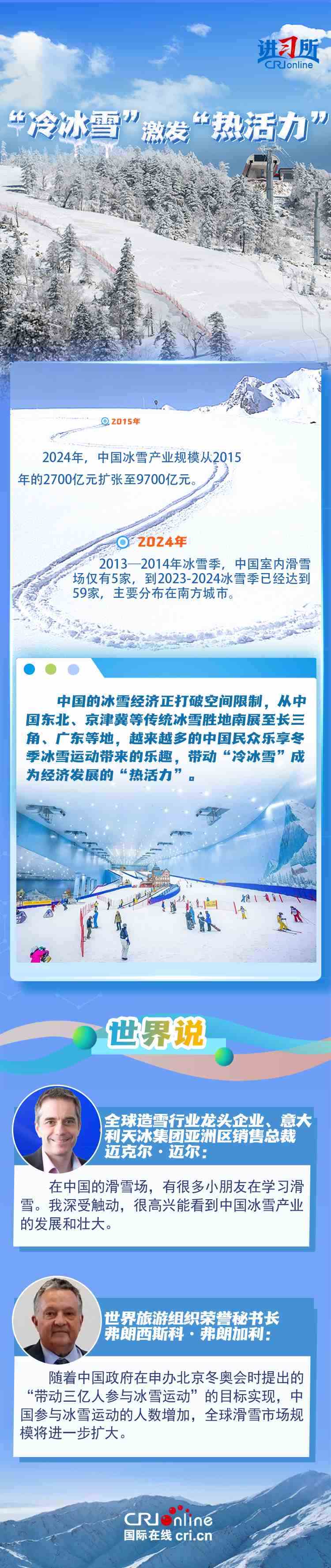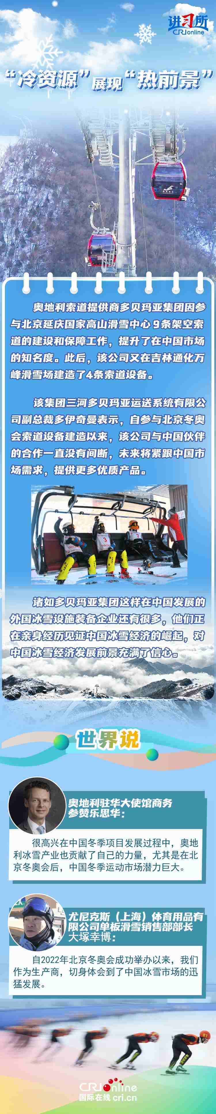 去年年底,中國(guó)國(guó)務(wù)院辦公廳印發(fā)《關(guān)于以冰雪運(yùn)動(dòng)高質(zhì)量發(fā)展激發(fā)冰雪經(jīng)濟(jì)活力的若干意見》,旨在鞏固和擴(kuò)大“帶動(dòng)三億人參與冰雪運(yùn)動(dòng)”成果,以冰雪運(yùn)動(dòng)為引領(lǐng),帶動(dòng)冰雪文化、冰雪裝備、冰雪旅游全產(chǎn)業(yè)鏈發(fā)展,推動(dòng)冰雪經(jīng)濟(jì)成為新增長(zhǎng)點(diǎn)。不少國(guó)際組織、企業(yè)和媒體認(rèn)為,中國(guó)冰雪經(jīng)濟(jì)的蓬勃發(fā)展,不僅帶來新合作機(jī)遇,更為全球冰雪市場(chǎng)貢獻(xiàn)力量。