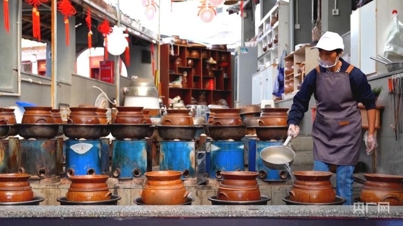 制作盬子雞的盬子,來(lái)自當(dāng)?shù)厥〖?jí)非物質(zhì)文化遺產(chǎn)代表性傳承人母先才的陶藝館。2014年,在政府的幫扶下,母先才依托傳統(tǒng)技藝開(kāi)設(shè)了陶藝館?,F(xiàn)在,他不僅把原來(lái)的土窯改成了更加環(huán)保的電窯,還把工坊變?yōu)榧铺铡⒀袑W(xué)、餐飲為一體的陶藝館,受到游客歡迎。