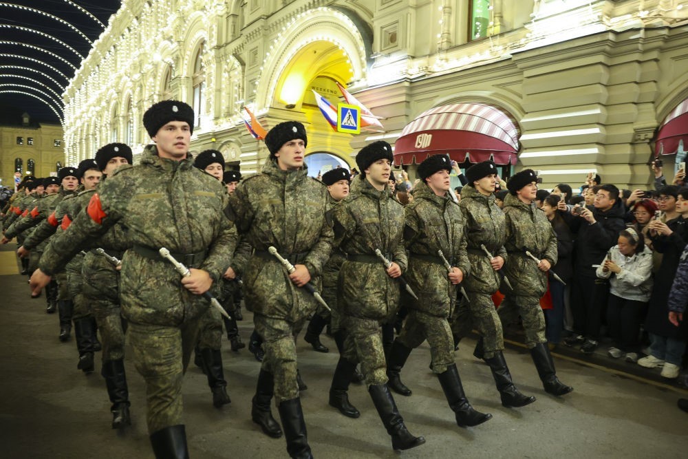 5月3日晚,受閱方隊(duì)在俄羅斯首都莫斯科前往紅場(chǎng)參加彩排。當(dāng)日,俄羅斯紀(jì)念蘇聯(lián)偉大衛(wèi)國(guó)戰(zhàn)爭(zhēng)勝利80周年閱兵式彩排在莫斯科舉行。新華社記者 姚大偉 攝