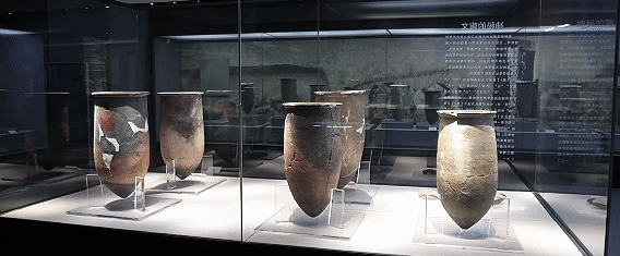 “這是一件出土于安徽蒙城新石器時代尉遲寺遺址的大口陶尊,距今大約4800年?!敝v解員指著一件陶器展品,“它的特別之處是器物上有著刻畫符號,分別是‘日’‘月’‘山’形。抽象的表達和組合,已經超越了簡單的圖畫,使我們看到了漢字的雛形。”