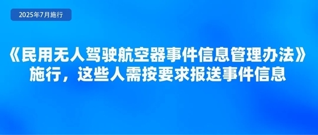 為規(guī)范民用無人駕駛航空器事件信息的管理,準(zhǔn)確掌握有關(guān)無人駕駛航空器安全運(yùn)行信息,及時(shí)發(fā)現(xiàn)安全隱患,控制運(yùn)行風(fēng)險(xiǎn),日前,民航局印發(fā)《民用無人駕駛航空器事件信息管理辦法》,自7月1日起施行?!掇k法》要求,特定類和審定類合格證持有人、擁有中型和大型無人駕駛航空器50架(含)以上的開放類合格證持有人、擁有大型無人駕駛航空器10架(含)以上的開放類合格證持有人應(yīng)當(dāng)制定事件信息管理程序,指定滿足條件的人員負(fù)責(zé)事件信息管理,并按要求報(bào)送事件信息。事發(fā)相關(guān)單位和人員應(yīng)當(dāng)按照規(guī)定如實(shí)報(bào)告事件信息,不得瞞報(bào)、謊報(bào)或者遲報(bào)。