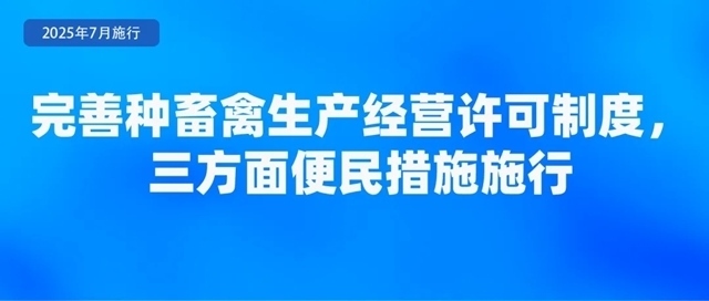 農(nóng)業(yè)農(nóng)村部公布了《種畜禽生產(chǎn)經(jīng)營許可管理辦法》,于2025年7月1日起實(shí)施?!掇k法》規(guī)定了三方面便民措施。一是統(tǒng)一平臺(tái)辦理。種畜禽生產(chǎn)經(jīng)營許可證的申請、受理、審核、核發(fā),統(tǒng)一在中國種業(yè)大數(shù)據(jù)平臺(tái)辦理,平臺(tái)提供查詢、核驗(yàn)等功能,并與全國一體化在線政務(wù)服務(wù)平臺(tái)對接。二是統(tǒng)一有效期?!掇k法》將有效期統(tǒng)一確定為5年,并明確已取得的種畜禽生產(chǎn)經(jīng)營許可證有效期不變,到期后按照新規(guī)定辦理。三是簡化變更手續(xù)。對變更生產(chǎn)經(jīng)營者名稱、法定代表人(負(fù)責(zé)人)以及從事父母代種畜禽(含品種和配套系)和商品代仔畜、雛禽生產(chǎn)經(jīng)營,需要變更其生產(chǎn)經(jīng)營的畜禽品種的,向原發(fā)證機(jī)關(guān)提交變更申請表及證明材料,符合條件的,原發(fā)證機(jī)關(guān)在十五個(gè)工作日內(nèi)即予以變更。