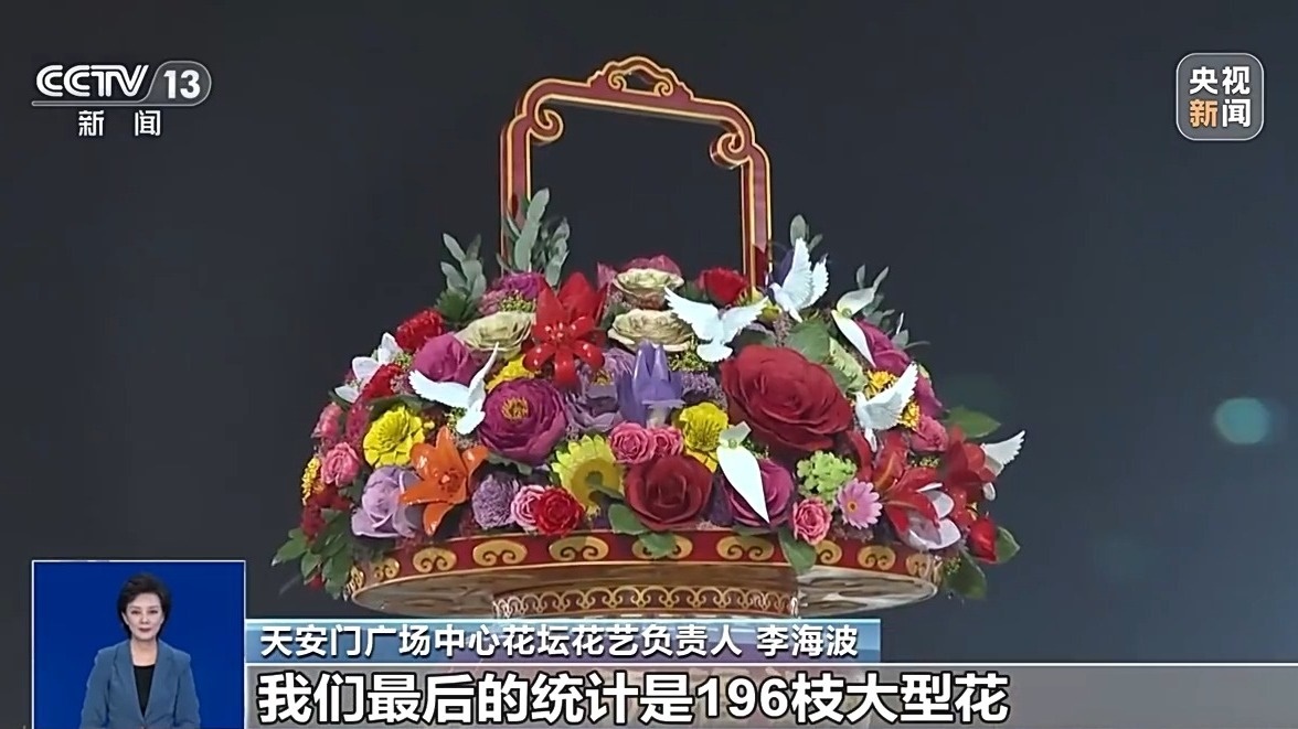 總臺(tái)記者 魏雨彤:今年的“祝福祖國(guó)”花籃籃體高16米,籃內(nèi)選取了18種美好寓意的花卉,比如說月季,首次作為焦點(diǎn)花寓意和平希望,向日葵寓意自由幸福。值得一提的是,今年還首次將靈動(dòng)的動(dòng)物元素融入其中,10只和平鴿正以三種不同的姿態(tài)翱翔于花籃之上,成為今年的新亮點(diǎn)。