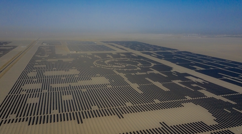 昔日的戈壁荒漠,如今由太陽(yáng)能光伏板匯聚成“藍(lán)色海洋”,由風(fēng)力發(fā)電機(jī)組成“白色森林”,正孕育著無(wú)限“風(fēng)光”。