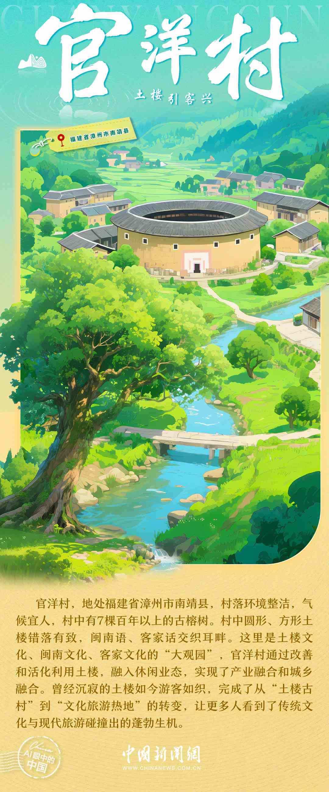 梯田的清晨,竹海的風(fēng),土樓的煙火,古寨的傍晚……中國鄉(xiāng)村正描繪出一幅產(chǎn)業(yè)興旺、生態(tài)宜居、鄉(xiāng)風(fēng)文明的時(shí)代畫卷。每一處風(fēng)景,都是中國鄉(xiāng)村全面振興的生動(dòng)注腳,每一段故事,都是探索全球鄉(xiāng)村發(fā)展路徑的中國實(shí)踐。7月6日,世界農(nóng)村發(fā)展日,讓我們一起走進(jìn)AI視野中的鄉(xiāng)村,去看看美麗中國的勃勃生機(jī)→