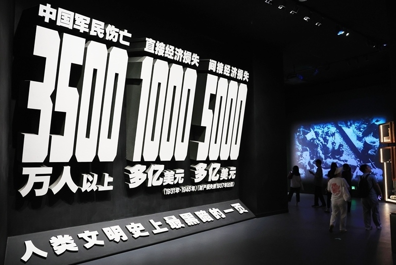 7月8日,參觀者在中國(guó)人民抗日戰(zhàn)爭(zhēng)紀(jì)念館參觀《為了民族解放與世界和平》主題展覽。