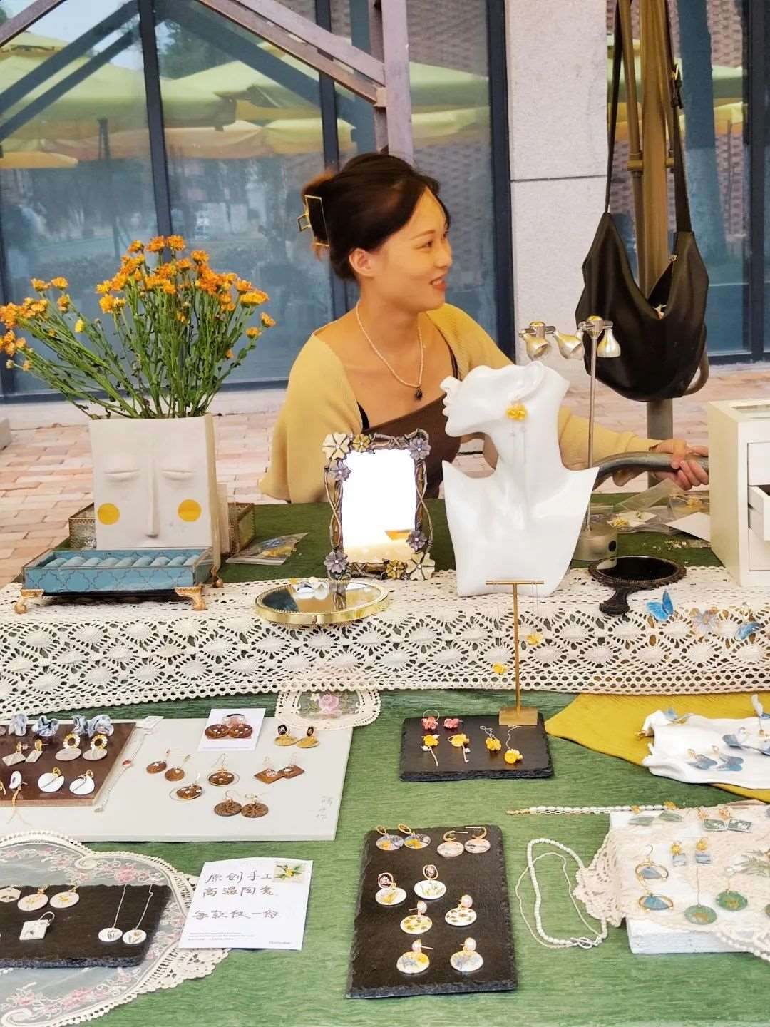 楊帆在江西景德鎮(zhèn)擺攤售賣自己設計的陶瓷飾品