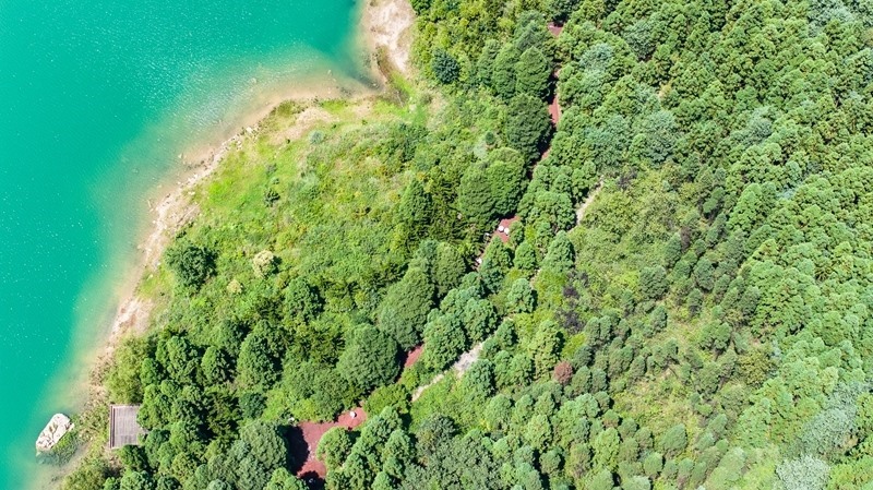 這是7月30日拍攝的六盤水市鐘山區(qū)瑤池公園風(fēng)光(無人機(jī)照片)。
