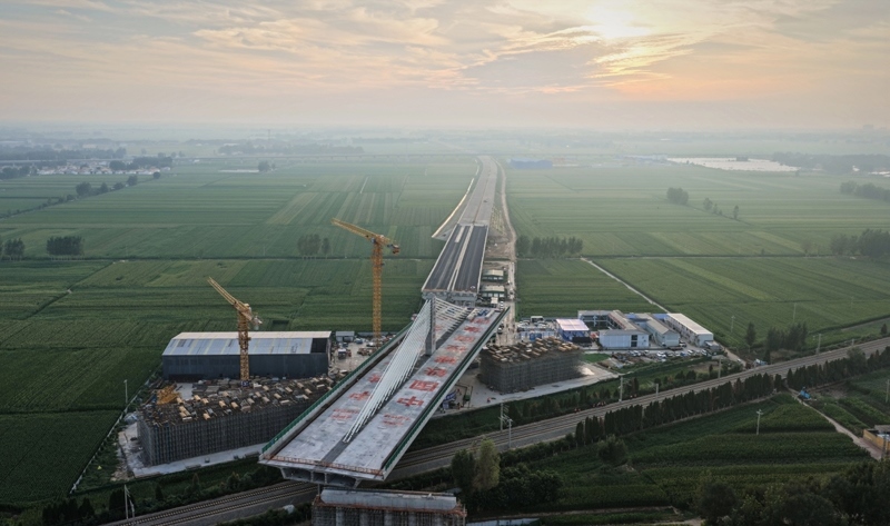 當(dāng)日,在山東德州,由中國(guó)鐵建投資集團(tuán)投資建設(shè)、中鐵十四局集團(tuán)承建的德州至上饒高速公路(簡(jiǎn)稱(chēng)“德上高速”)臨清連接線跨京九鐵路斜拉橋?qū)崿F(xiàn)精準(zhǔn)轉(zhuǎn)體對(duì)接。該橋采用不對(duì)稱(chēng)矮塔斜拉結(jié)構(gòu),重達(dá)23500噸。