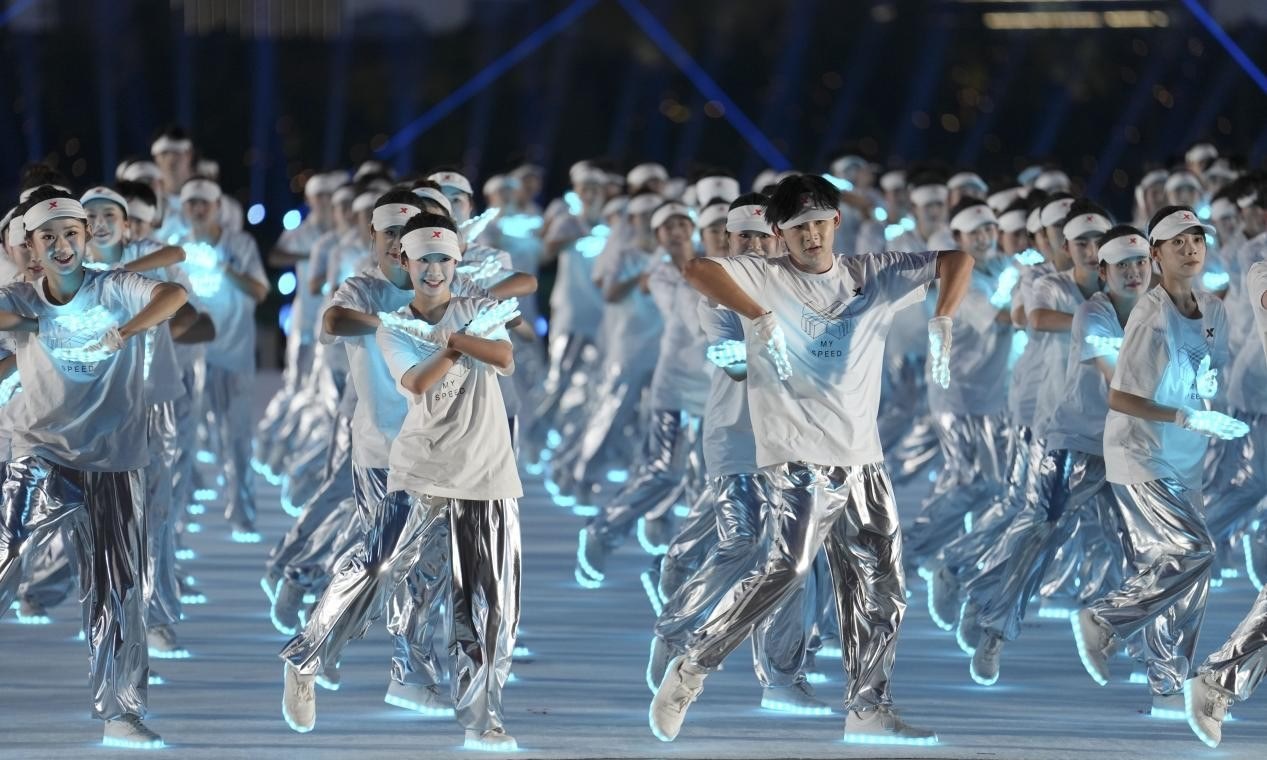 整場(chǎng)開(kāi)幕式時(shí)長(zhǎng)90分鐘,其中文藝表演僅占約15分鐘,節(jié)目結(jié)構(gòu)也摒棄了宏大敘事的慣常路徑,轉(zhuǎn)而采用輕盈、靈動(dòng)、具有生活氣息的表達(dá)方式。