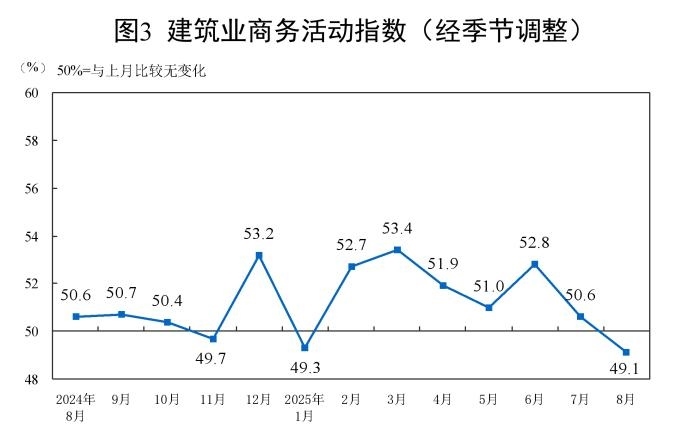 8月份,非制造業(yè)商務(wù)活動(dòng)指數(shù)為50.3%,比上月上升0.2個(gè)百分點(diǎn),高于臨界點(diǎn),非制造業(yè)繼續(xù)保持?jǐn)U張。