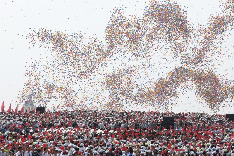 9月3日,紀念中國人民抗日戰(zhàn)爭暨世界反法西斯戰(zhàn)爭勝利80周年大會在北京隆重舉行。這是紀念大會現場放飛氣球。