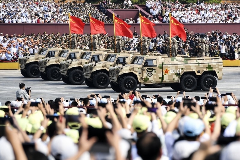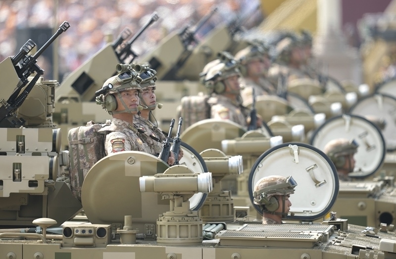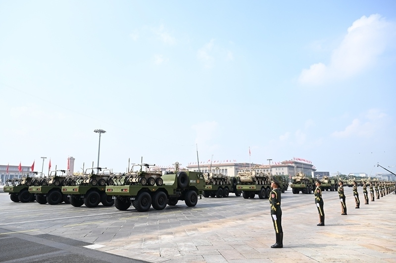 9月3日,紀(jì)念中國人民抗日戰(zhàn)爭暨世界反法西斯戰(zhàn)爭勝利80周年大會在北京隆重舉行。這是信息支援方隊(duì)接受檢閱。