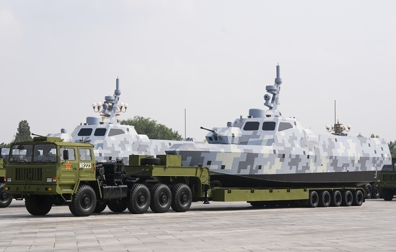 9月3日,紀(jì)念中國人民抗日戰(zhàn)爭暨世界反法西斯戰(zhàn)爭勝利80周年大會在北京隆重舉行。這是海上無人作戰(zhàn)方隊(duì)接受檢閱。