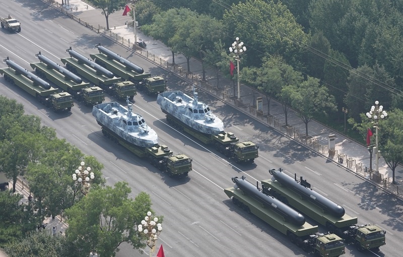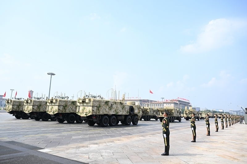 9月3日,紀(jì)念中國人民抗日戰(zhàn)爭暨世界反法西斯戰(zhàn)爭勝利80周年大會在北京隆重舉行。這是高超聲速導(dǎo)彈方隊(duì)接受檢閱。
