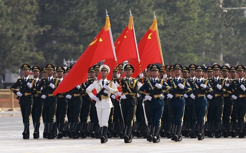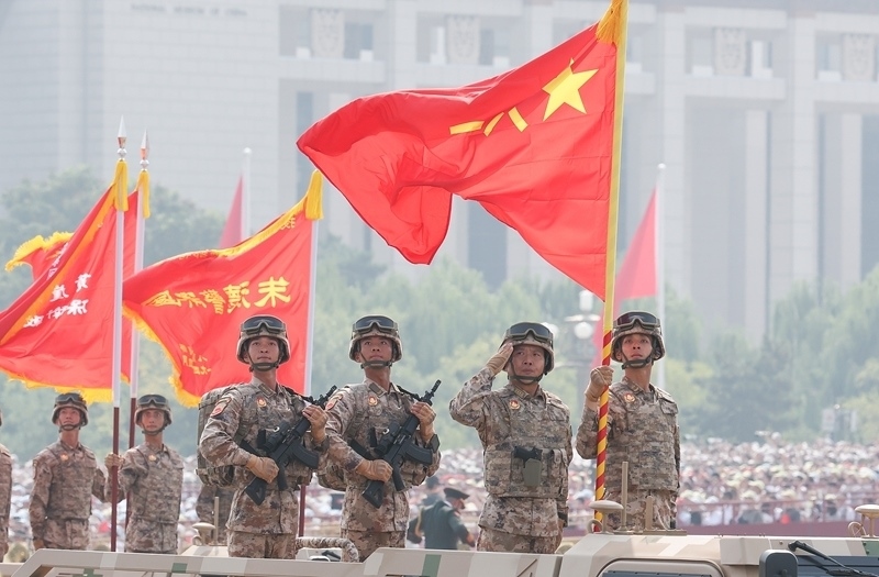9月3日,紀(jì)念中國人民抗日戰(zhàn)爭暨世界反法西斯戰(zhàn)爭勝利80周年大會在北京隆重舉行。這是儀仗方隊(duì)接受檢閱。