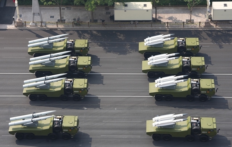 9月3日,紀(jì)念中國人民抗日戰(zhàn)爭暨世界反法西斯戰(zhàn)爭勝利80周年大會在北京隆重舉行。這是反艦導(dǎo)彈方隊(duì)接受檢閱。