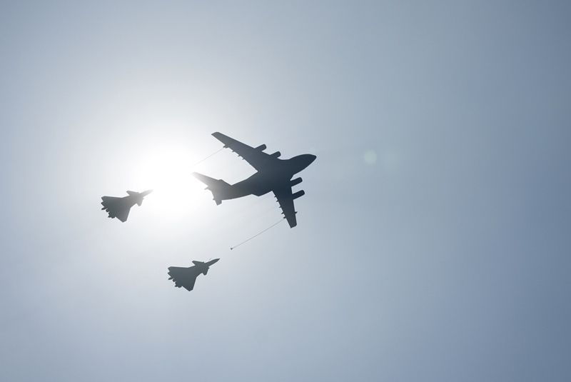 9月3日,紀(jì)念中國人民抗日戰(zhàn)爭暨世界反法西斯戰(zhàn)爭勝利80周年大會在北京隆重舉行。這是加受油機(jī)梯隊(duì)接受檢閱。