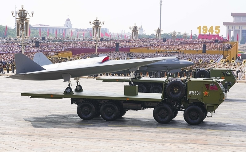 9月3日,紀(jì)念中國人民抗日戰(zhàn)爭暨世界反法西斯戰(zhàn)爭勝利80周年大會在北京隆重舉行。這是空中無人作戰(zhàn)方隊(duì)接受檢閱。
