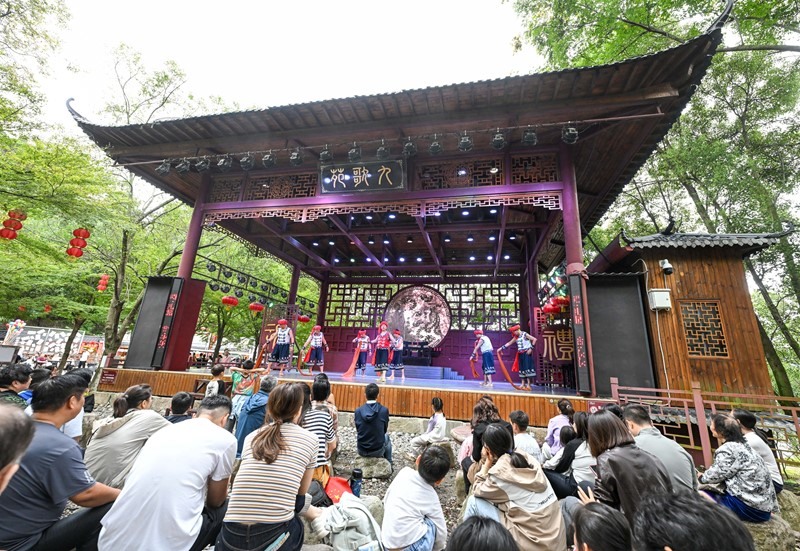 10月3日,人們在湖北省宜昌市秭歸縣屈原故里景區(qū)觀看表演。