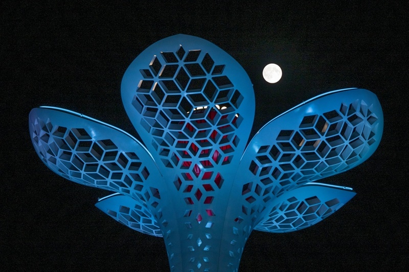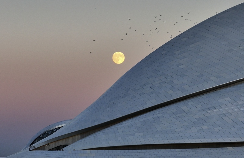 10月6日在黑龍江省哈爾濱大劇院拍攝的中秋滿(mǎn)月(無(wú)人機(jī)照片)。