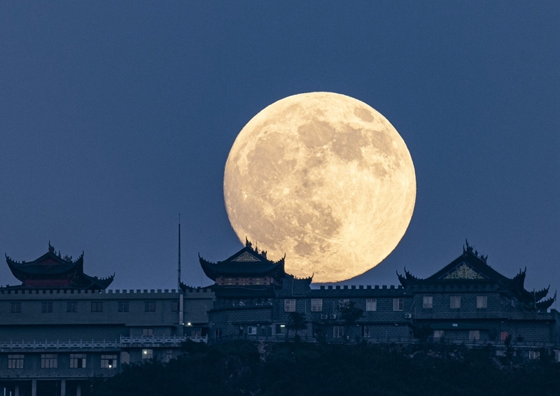 10月6日在浙江省溫州市蒼南縣炎亭鎮(zhèn)拍攝的中秋圓月。