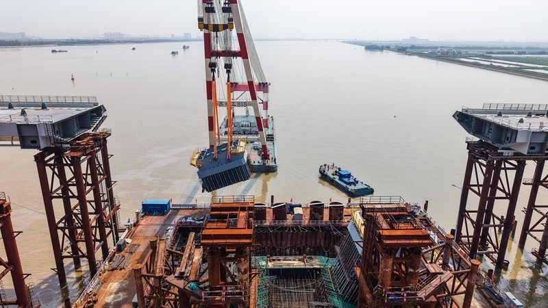 10月10日,由中鐵建大橋局承建的萬龍大橋吊裝架設(shè)首節(jié)段主塔。位于廣州南沙區(qū)的萬龍大橋跨越珠江口龍穴南水道,全長5146米,主橋長1150米,主跨608米,為粵港澳大灣區(qū)又一世界級橋梁。