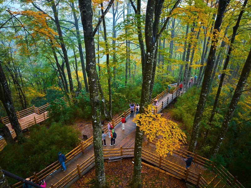 10月18日,游客在四川省光霧山風(fēng)景區(qū)的天然畫廊暢游。
