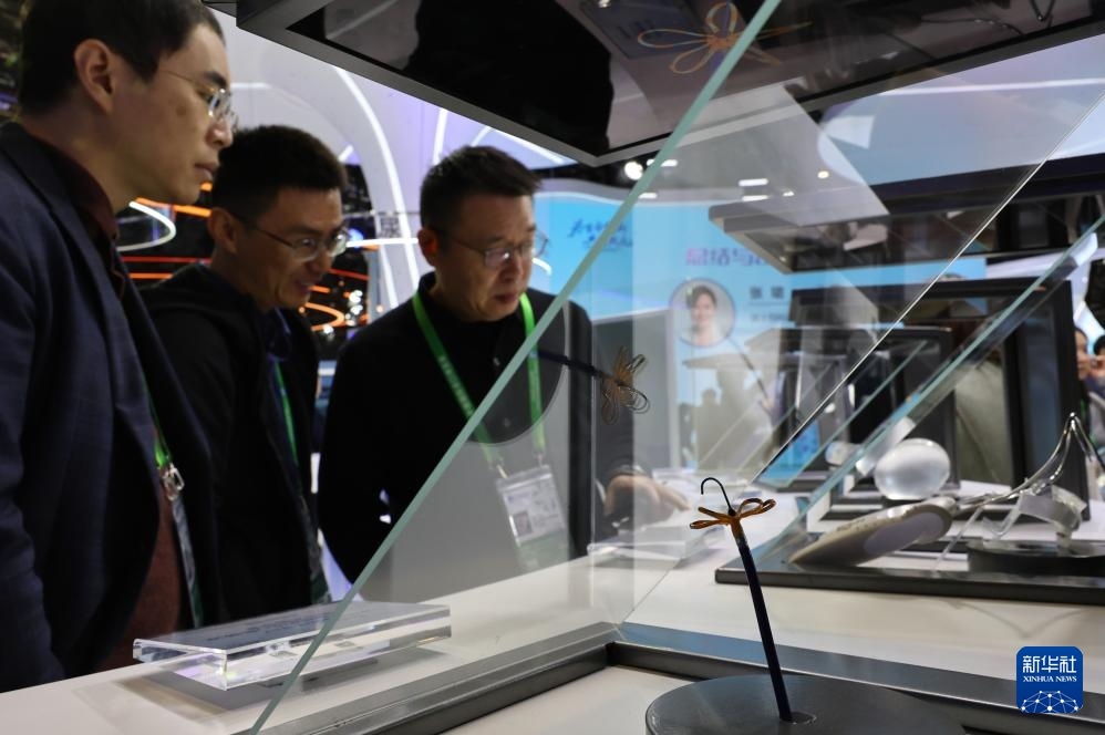 11月6日,參觀者在美敦力公司一款超硬導絲產(chǎn)品展臺前駐足觀看,這是該產(chǎn)品的全球首展。