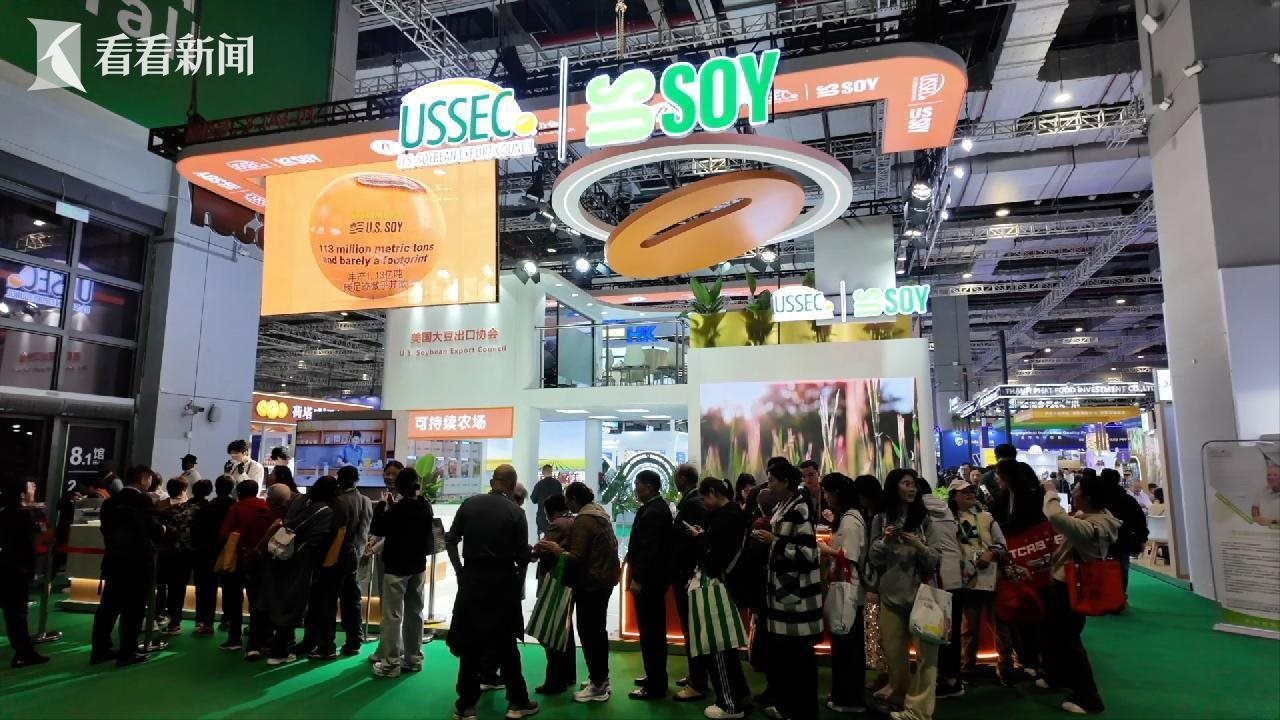 蘇健說(shuō)的不是客套話(huà)。進(jìn)博會(huì)一開(kāi)始,他的行程就滿(mǎn)滿(mǎn)當(dāng)當(dāng)——開(kāi)館剪彩、客商對(duì)接、媒體專(zhuān)訪。他的身后,是一群帶著中文名片、中文宣傳資料的豆農(nóng),賣(mài)力帶貨?!罢绱蠹以诂F(xiàn)場(chǎng)看到的,我們可以把大豆加工成大豆油,這種油品更適合高溫烹飪。”美國(guó)豆農(nóng)蓋思凱說(shuō)。