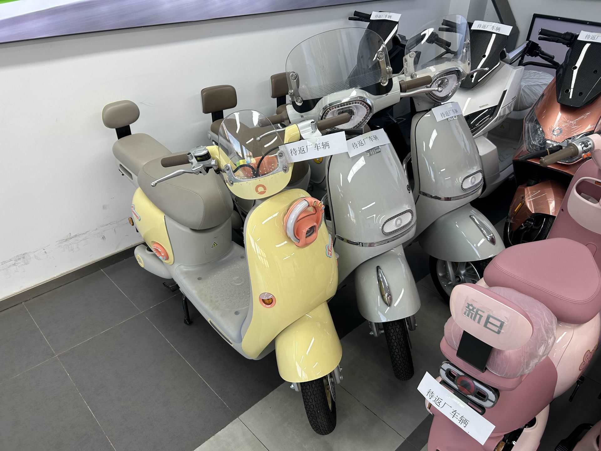 新日電動(dòng)車店,擺著不少待返廠的老國(guó)標(biāo)車