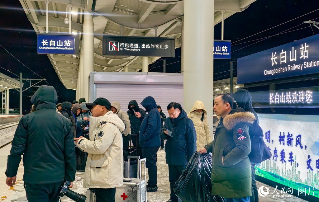 旅客在長(zhǎng)白山站站臺(tái)上候車。