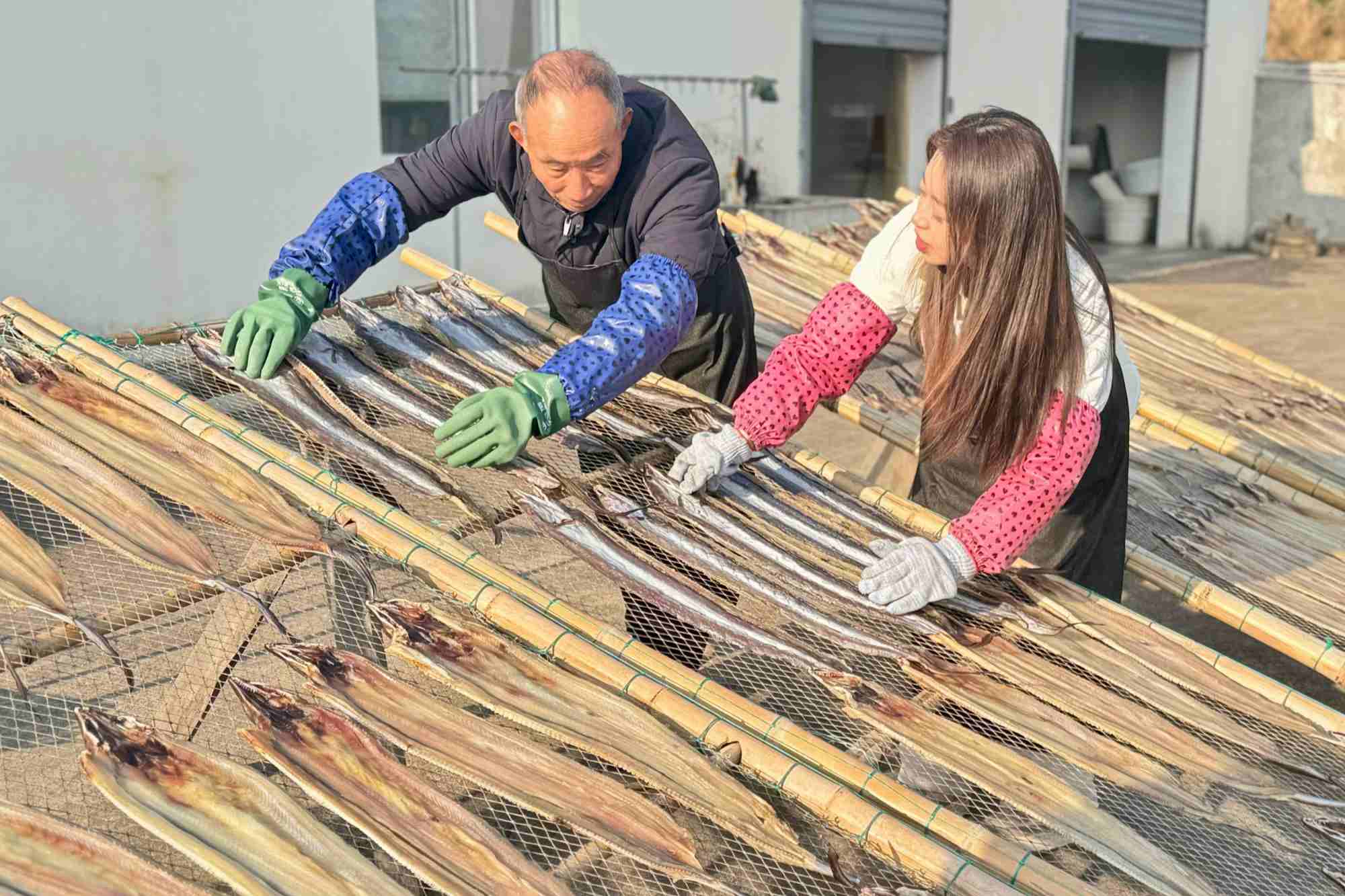 該廠生產(chǎn)的鰻魚、馬鮫魚、魷魚、黃魚、蝦等鲞類產(chǎn)品,在北京、上海、南京等城市供不應(yīng)求,年銷售額超過500萬元。以前靠鹽和陽光保存海鮮的老手藝,現(xiàn)在還融入了智能化烘干、真空包裝等現(xiàn)代技術(shù),魚鲞保質(zhì)期延長至半年以上,通過電商平臺銷往全國各地,從“農(nóng)家特產(chǎn)”升級為“網(wǎng)紅爆款”。