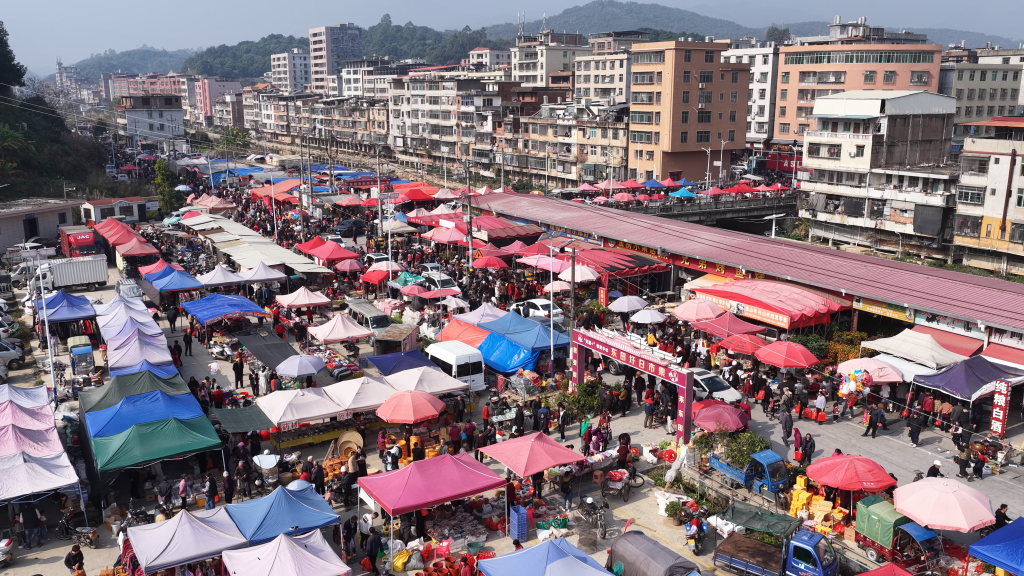 “目前東田鎮(zhèn)圩日市集總面積近百畝,固定攤位300多個,流動攤位600多個?!蹦习彩袞|田鎮(zhèn)黨委書記蘇招進(jìn)說,近兩年“東田趕圩”的人氣持續(xù)攀升、熱度不斷高漲,鎮(zhèn)黨委、政府積極響應(yīng)群眾需求,優(yōu)化攤位布局,擴(kuò)建免費(fèi)停車場,增設(shè)新能源充電樁、公共休息區(qū)和衛(wèi)生設(shè)施等硬件配套。同時(shí)組織鎮(zhèn)村志愿者開展暖心服務(wù),持續(xù)提升游客逛圩的便利性與舒適度。
