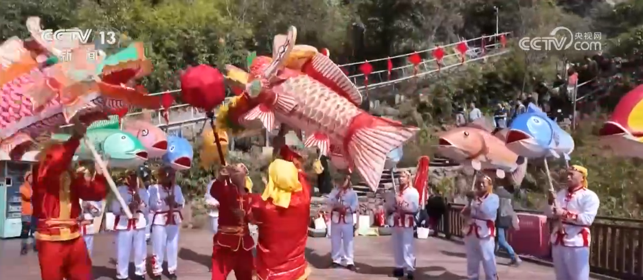 記者身后的九鯉湖景區(qū),湖光山色、層巒疊翠,展現(xiàn)出南方山岳特有的靈秀。景區(qū)里最熱門的打卡點之一,叫做“一線天”。這里最窄處不到30厘米,一次只能容一人貼壁通過,游客需要側(cè)身慢慢穿行,在狹窄石縫間體驗攀登的樂趣。記者身旁正在巡游的就是當?shù)氐姆沁z——店下魚燈。大家看,一盞盞彩繪魚燈隨著隊伍前進上下擺動,像魚兒在水里游,特別靈動。在過去,漁民會用魚燈祈愿出海平安、豐衣足食。過年的時候看魚燈,也寓意“年年有余、風調(diào)雨順”。
