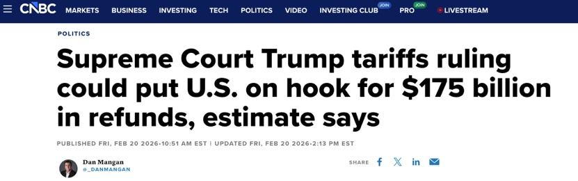 更值得注意的是,從近兩天動作看,白宮的核心優(yōu)先級并不是“盡快把錢退回去”,而是“盡快把關稅工具續(xù)上”。白宮一方面通過行政令,終止依據(jù)IEEPA加征的額外從價稅,另一方面又迅速依《1974年貿(mào)易法》第一百二十二條祭出為期150天的臨時全球15%關稅,同時加大利用301條甚至232條等傳統(tǒng)工具,繼續(xù)搭建新的關稅墻。這套動作釋放的信號十分明確:關稅杠桿要繼續(xù)用,至于已經(jīng)收來的稅款怎么退、退多少,姑且交給訴訟和程序去磨。換句話說,即便法院逼著政府退錢,白宮也在試圖通過新一輪、基于其他法律授權的關稅,把現(xiàn)金流盡可能補回來。