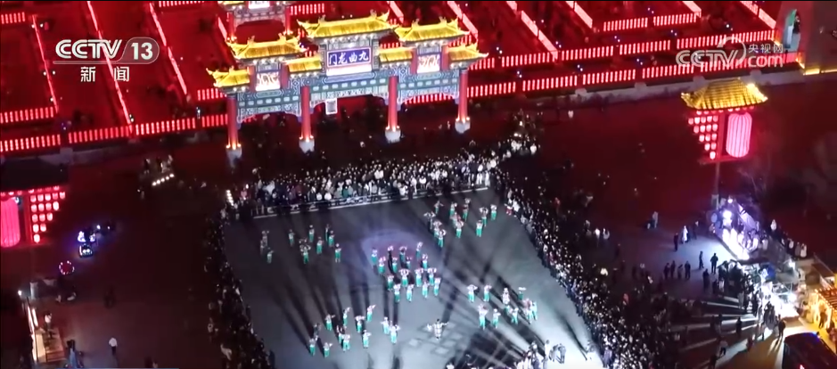 九曲燈陣占地面積近20畝,外部方正、內(nèi)部曲折,宛如“九曲十八彎”的黃河。游客們跟隨奏樂隊(duì)伍,進(jìn)入九宮九格的迷宮,穿行全長(zhǎng)2.4公里的回廊,依次走過寓意著“福祿壽喜”的九個(gè)曲陣。兩邊的燈籠上懸掛著百家姓和十二生肖,游客們可以一邊轉(zhuǎn)九曲,一邊尋找印有自己姓氏和屬相的紅燈籠,沉浸式體驗(yàn)元宵佳節(jié)的喜慶氛圍。除了九曲燈陣,社火展演、主題光影秀、無人機(jī)煙花秀也輪番上演。據(jù)了解,該活動(dòng)將一直持續(xù)到正月十五。