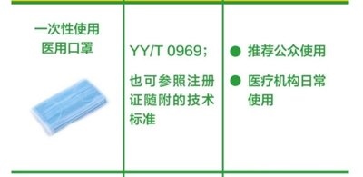 一次性使用醫(yī)用口罩:推薦公眾和醫(yī)療機(jī)構(gòu)的日常使用。(橫列為口罩的圖片+名稱、產(chǎn)品標(biāo)準(zhǔn)、建議應(yīng)用場(chǎng)景。圖片來(lái)源:中國(guó)疾控中心)