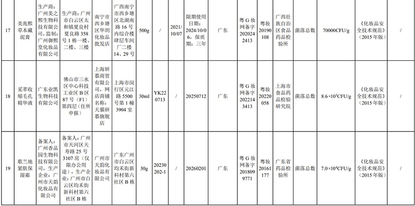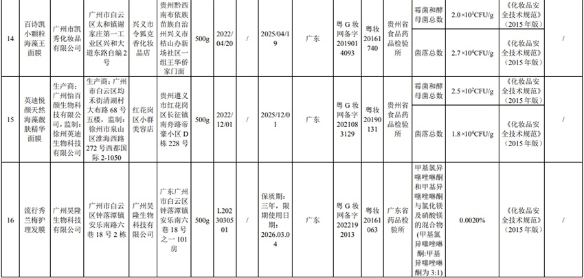 通告顯示,本次不符合規(guī)定的23批次化妝品涉及廣州市天科化妝品有限公司、廣州市鈺彩化妝品有限公司、廣州嘉瀛化妝品有限公司、廣州市白云區(qū)雅頓化妝品廠、廣州有孚精細(xì)化工有限公司、廣州雅升生物科技有限公司等,包括染發(fā)膏、防曬乳、面膜、保濕霜等產(chǎn)品。