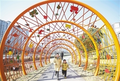 江蘇省淮安市,小朋友在步道廣場玩耍。 趙啟瑞攝(人民視覺)