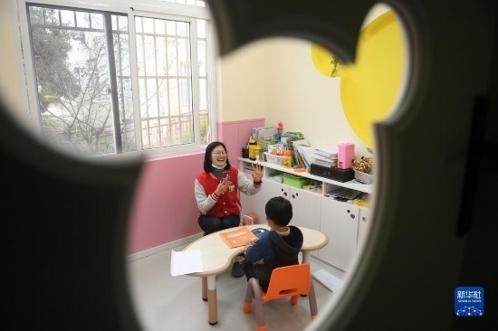 3月29日,一名老師在給自閉癥兒童做一對一訓(xùn)練。
