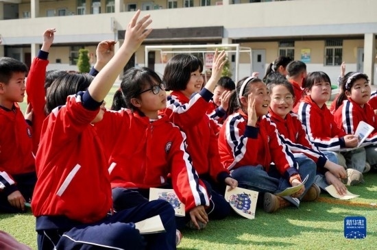 3月31日,徐州市漢橋小學(xué)的學(xué)生在鐵路安全知識(shí)講解中舉手回答互動(dòng)問(wèn)題。