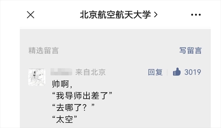 “我導師出差了!”“去哪了?”“太空!”
