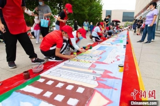 圖為天津市少年兒童百米長卷繪制活動現(xiàn)場。王在御 攝