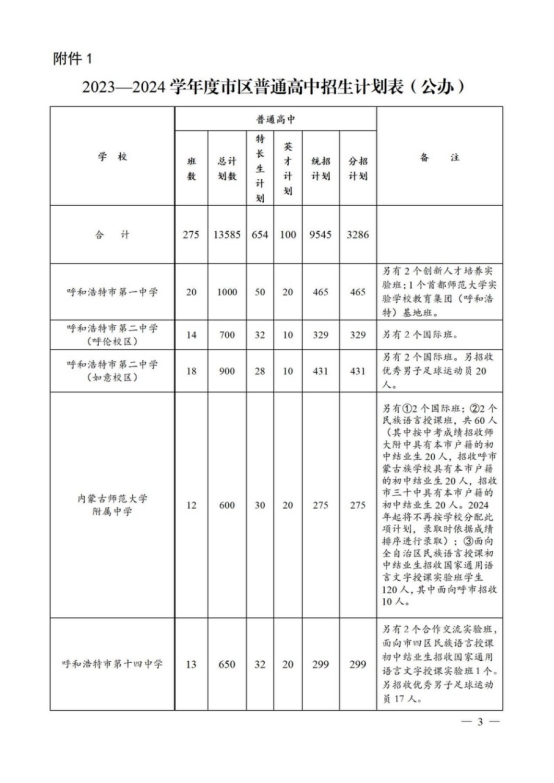 13日,呼和浩特市教育局發(fā)布2023-2024學年度市區(qū)高中招生計劃的通知,同時明確有關(guān)要求。
