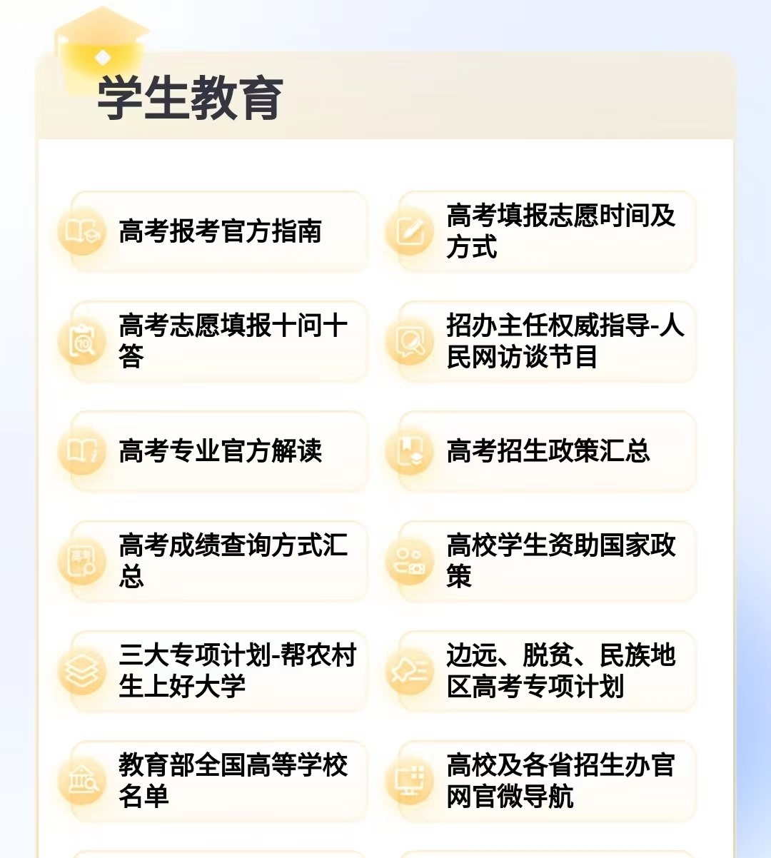 聚焦于高考生群體,“人民網(wǎng)+”客戶端便民服務(wù)匯總小程序聚合多項(xiàng)實(shí)用資訊,為考生及家長提供權(quán)威、便捷的服務(wù):
