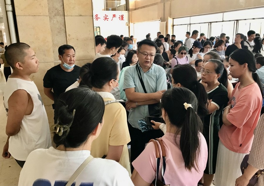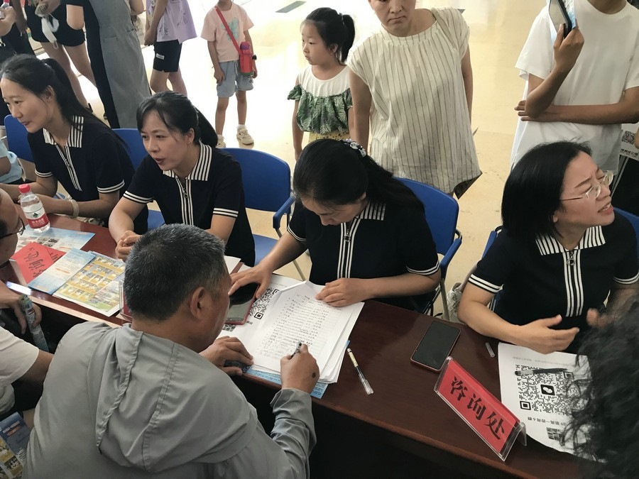 上午8:00,家長(zhǎng)和同學(xué)們陸續(xù)走進(jìn)學(xué)校。截至9:00,學(xué)校3個(gè)報(bào)告廳、教學(xué)樓二樓大廳、家長(zhǎng)接待室、校南門家長(zhǎng)咨詢點(diǎn),共接待家長(zhǎng)超1500人次。