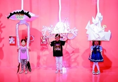 中華世紀(jì)壇展廳內(nèi),小朋友們正與裝置藝術(shù)作品進(jìn)行互動。資料圖片